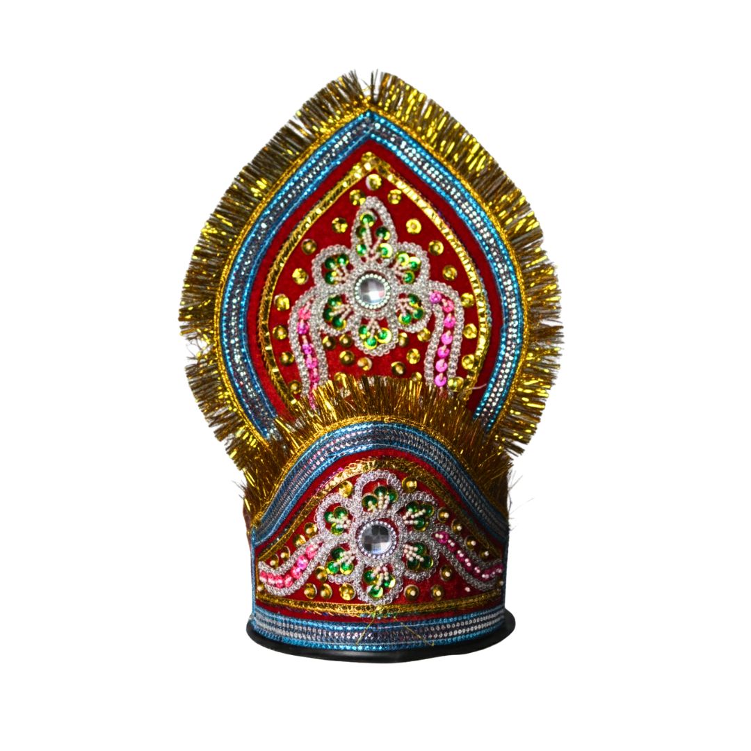 Celebrate the spirit of devotion with this Divine Red Sequin Mukut, beautifully handcrafted with vibrant beads, sequins, and golden tinsel detailing. The intricate floral patterns and shimmering embellishments bring out a rich, festive charm, perfect for adorning Shri Krishna or Bal Gopal idols.
